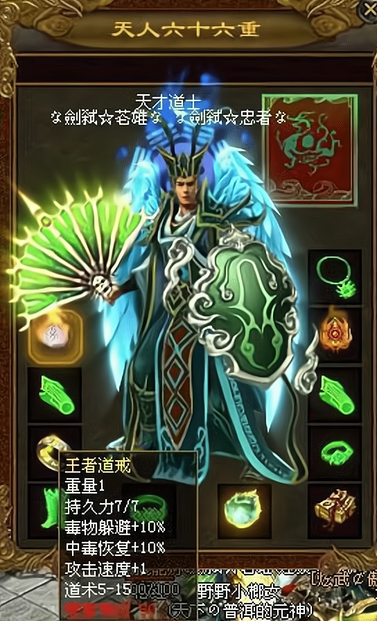 特殊效果逆天碾压特戒!麻痹叠加 + 无视施毒,太香了!王者战戒不仅属性能打,还自带麻痹效果,传闻和麻痹戒指一起装备,能大幅提升麻痹几率 —— 想想战士戴两枚 “控场神戒”,刀刀有机会麻痹对手,简直是法师、道士的噩梦!而王者法戒和王者道戒更绝,自带中毒恢复 + 毒物躲避属性,这在当年堪称 “道士天敌”!有了这两个属性加成,对手道士的施毒术几乎能被无视,再也不用怕被毒得掉血不止,生存能力直接翻倍!