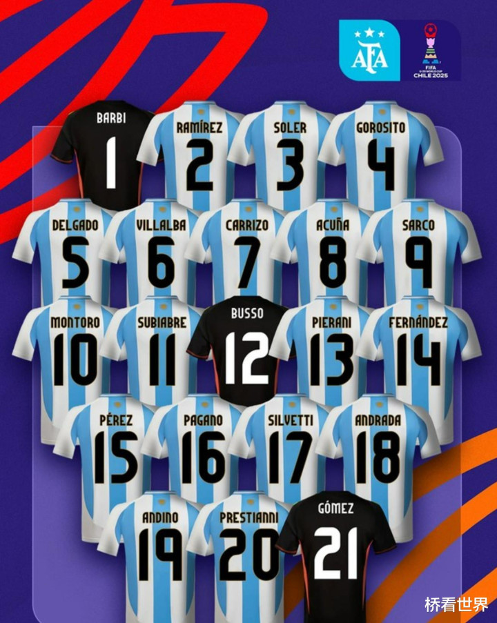 【阿根廷 U20 国家队世青赛参赛球员号码完整名单】