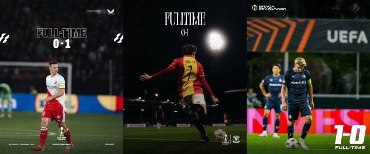 直播吧09月26日讯欧联杯比赛,荷甲球队全军覆没:费耶诺德0-1布拉加、乌德勒支0-1里昂、前进之鹰0-1布加勒斯特星。