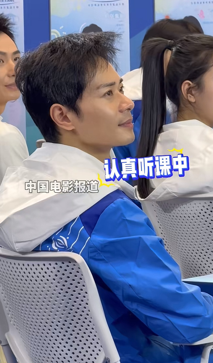 上课的时候他一脸专注地听老师讲课,小小年纪就出道,已经是个“老人”了,却还有一种新人的乖巧真诚。