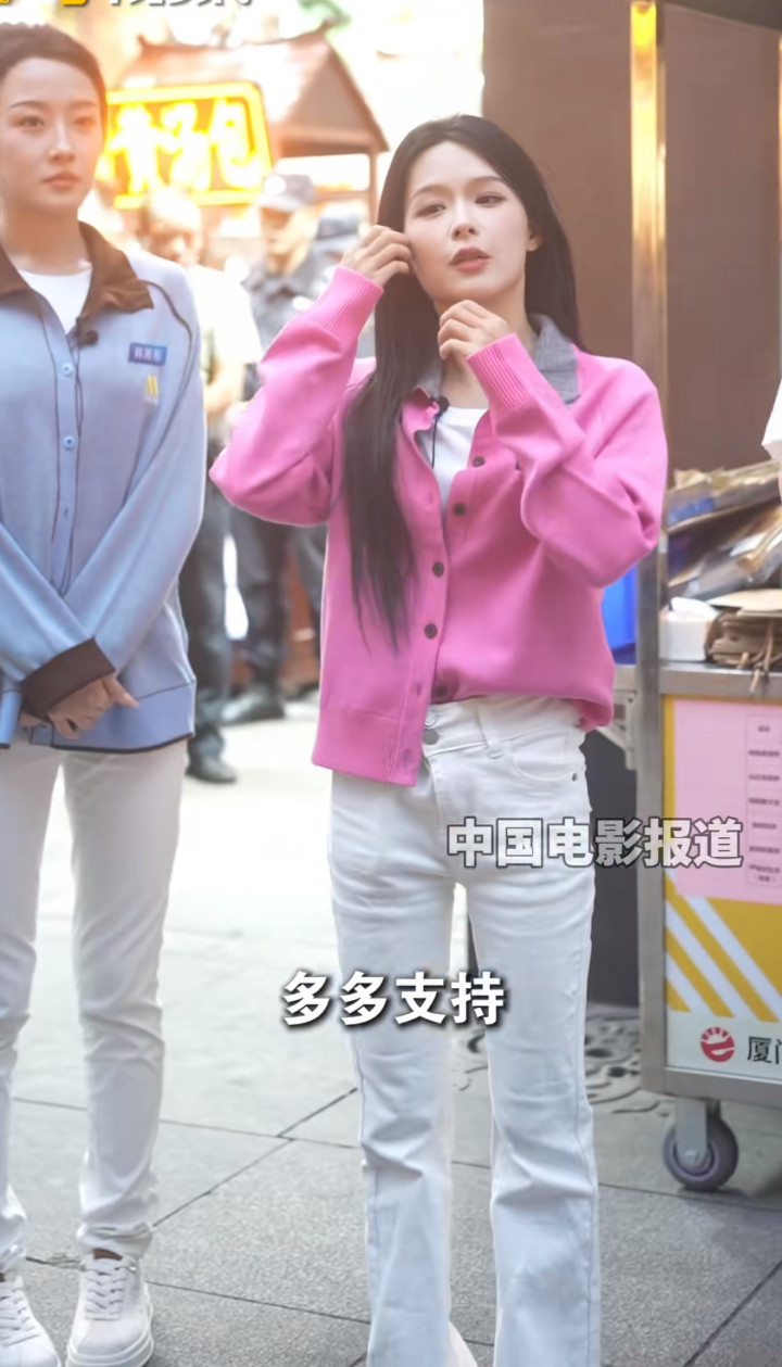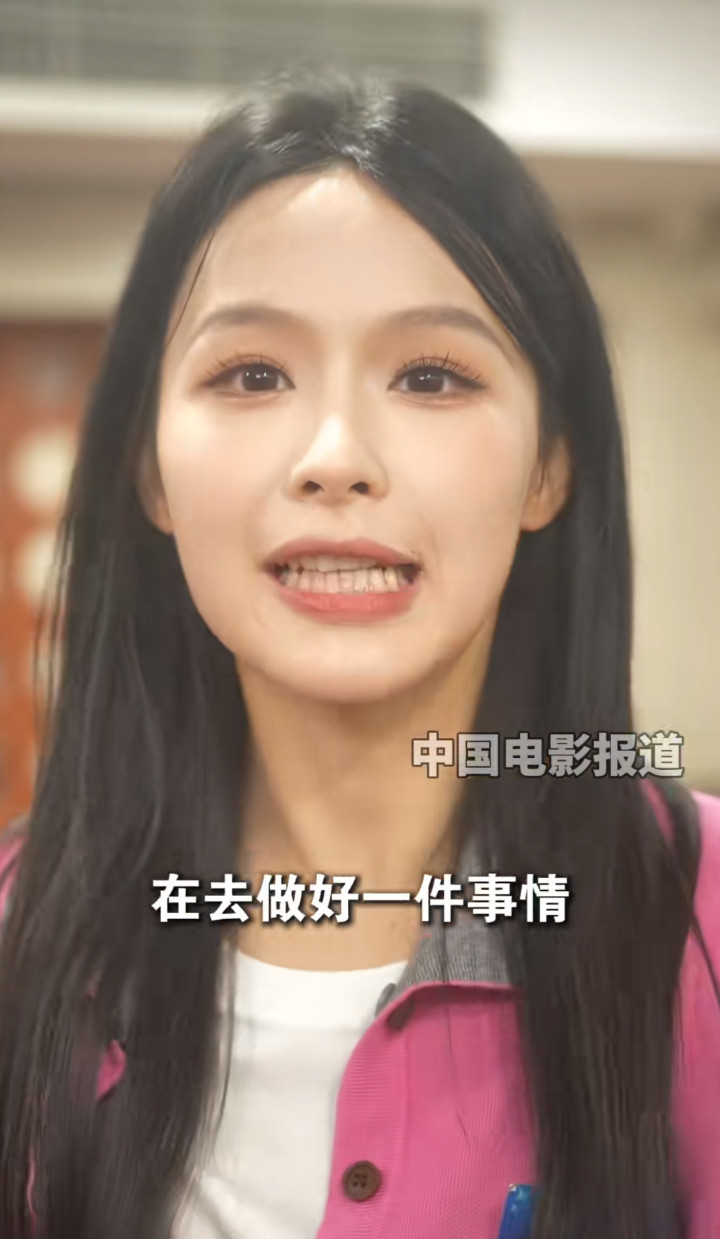 采访的怼脸镜头,假睫毛直戳屏幕,说话时上下两排牙全露,显得嘴唇七歪八斜,表情管理还需再练练。
