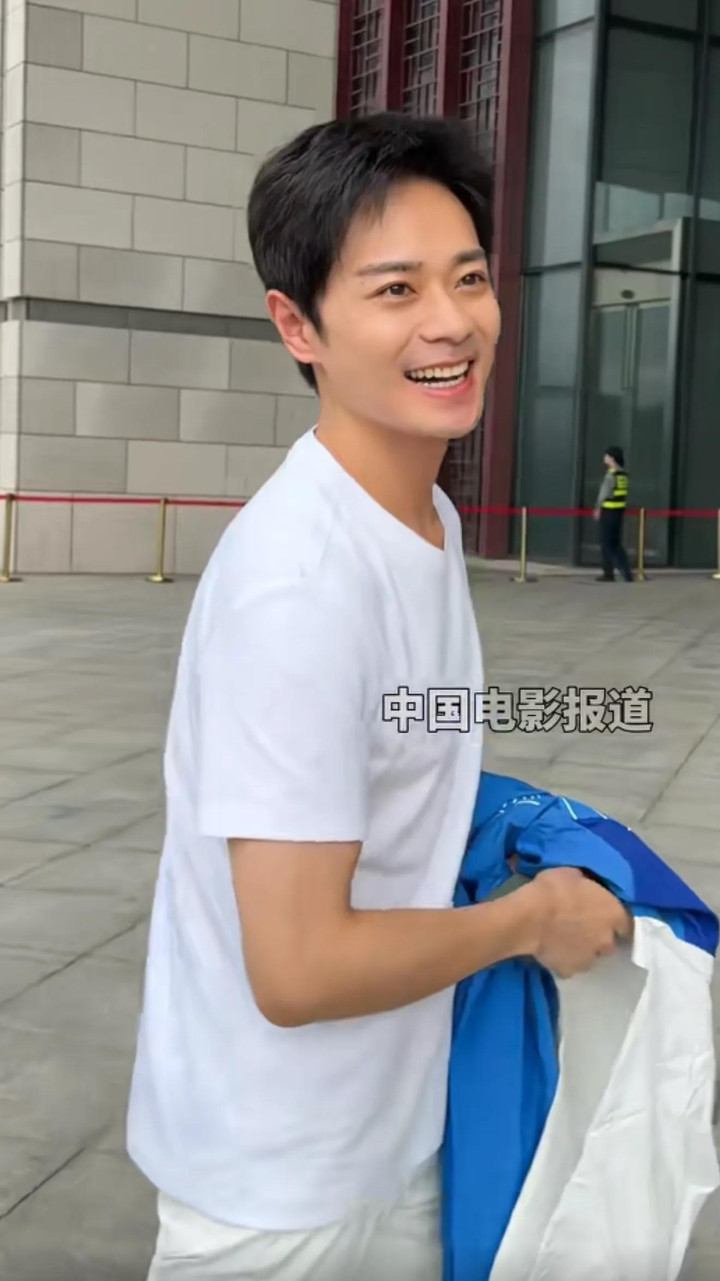 记者跟他打招呼,咧着牙冲人一笑少年感溢屏,哪里像是37岁的人呐。