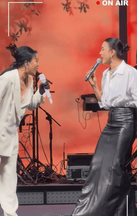 面对天后级别的歌手,宋佳也没怯场,大大方方地跟对方一起唱歌,还跟随着节奏轻轻扭动身体,松弛感直接拉满了。